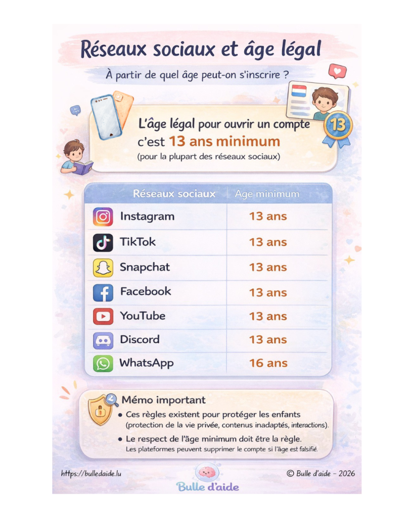 Un point essentiel est le respect de l’âge minimum pour l’inscription sur les réseaux sociaux. Cette règle n’existe pas par hasard : elle vise à protéger les plus jeunes face à des contenus ou interactions qui ne sont pas adaptés à leur développement.